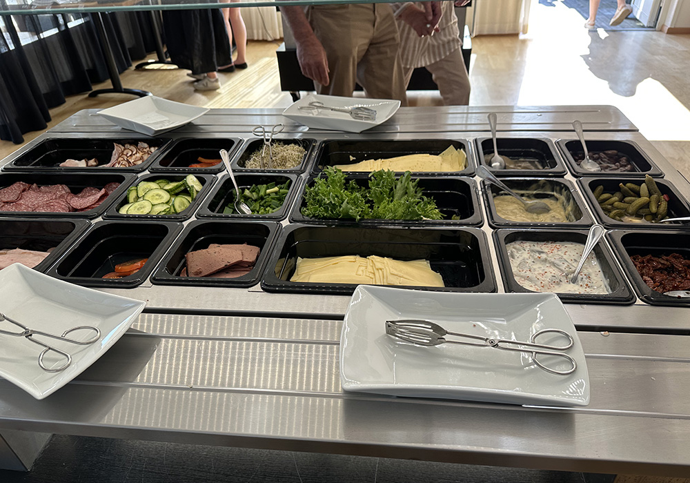 Breakfast was also good, with everything you want at a breakfast buffet. There was bread, cold cuts, yoghurt, scrambled eggs, bacon and more. Eating outside on the terrace in the morning sunshine was a perfect start to the day.